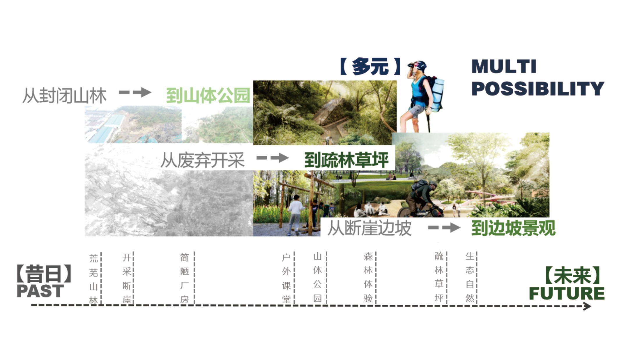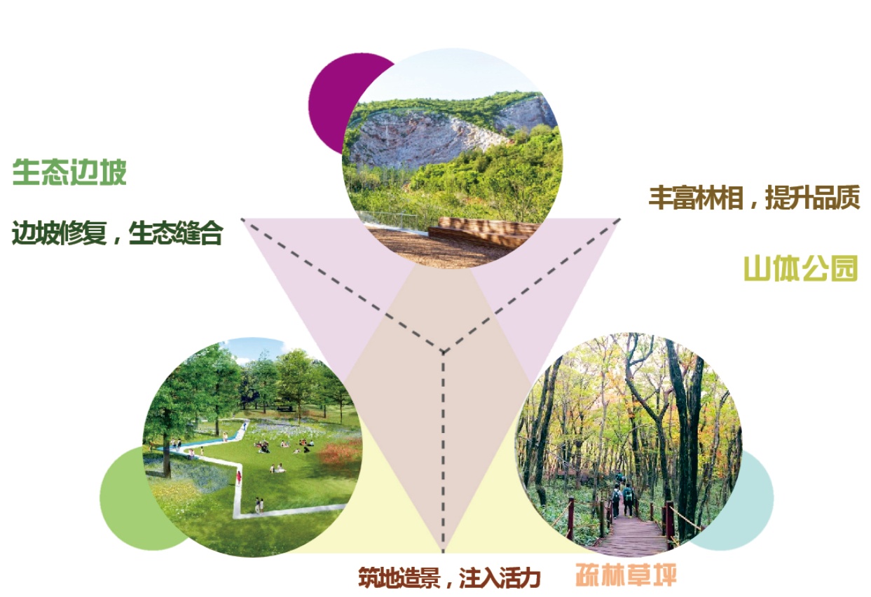 【项目介绍】该项目是佛山市高明区明城镇城七路西侧建筑地块,原为开采生产基址,开采行为大造成岩石裸露、水土流失。修复方式为在进行土石方开采利用的同时进行生态修复及综合改造利用,在修复的基础上完善生态功能,西侧打造山体公园生态景观,东侧打造疏林草坪。